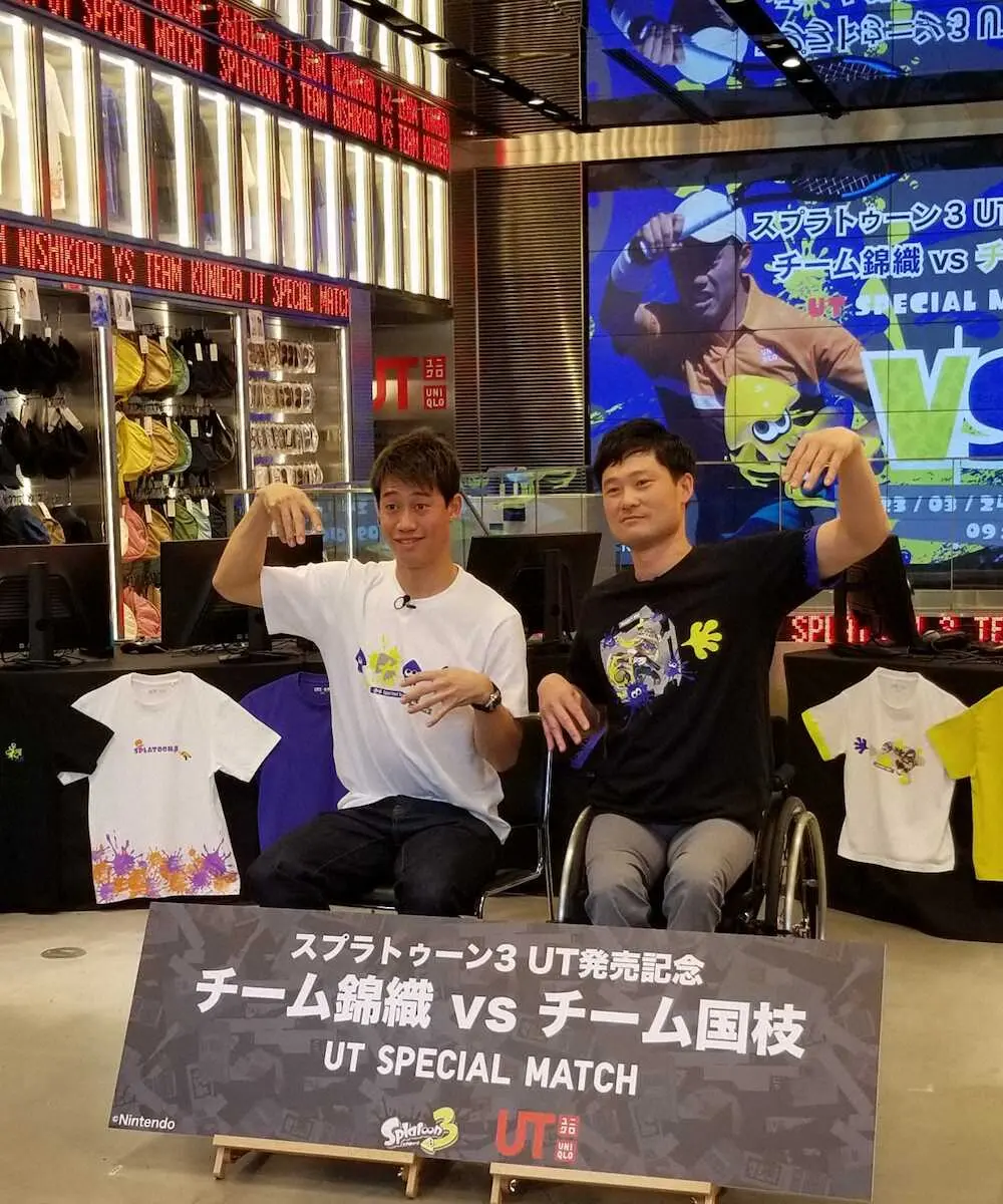 ユニクロが24日、原宿店でスプラトゥーン3UT発売記念イベントを開催した。グローバルブランドアンバサダーを務める男子テニスの錦織圭(33)、車いすテニスでの第一人者で1月に引退した国枝慎吾氏(39)がゲスト出演。イベントでは両選手が「チーム国枝」と「チーム錦織」に分かれて、一般参加者とチームを組み、スプラトゥーン3で対戦した。3試合を行い、2勝1敗で「チーム国枝」が勝利。国枝氏が対戦相手の子供から「ウザかった」と言われ「光栄です」と笑顔で応じる一幕もあった。