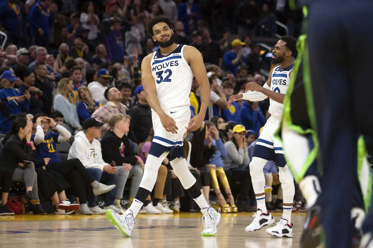 プレーオフとプレーイン・トーナメントを巡る争いが大詰めを迎えて激化している。西地区全体7位のティンバーウルブスは26日、敵地サンフランシスコ(カリフォルニア州)で6位のウォリアーズに99―96(前半53―55)で競り勝って3連敗のあと3連勝を飾り、今季の成績は38勝37敗。プレーオフに無条件で進出できる下限の6位にいるウォリアーズとのゲーム差を「0・5」に縮めた。