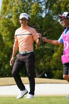 タッチが合ったのは7番。3メートルの下りを沈めると、9番は2メートル、10番は6メートルの下りを決めて連続バーディー。12番は残り216ヤードから5Iで2オン。ここでも奥から8メートルを放り込みイーグル。その後も3バーディーを重ねて、リーダーボードのトップに収まった。