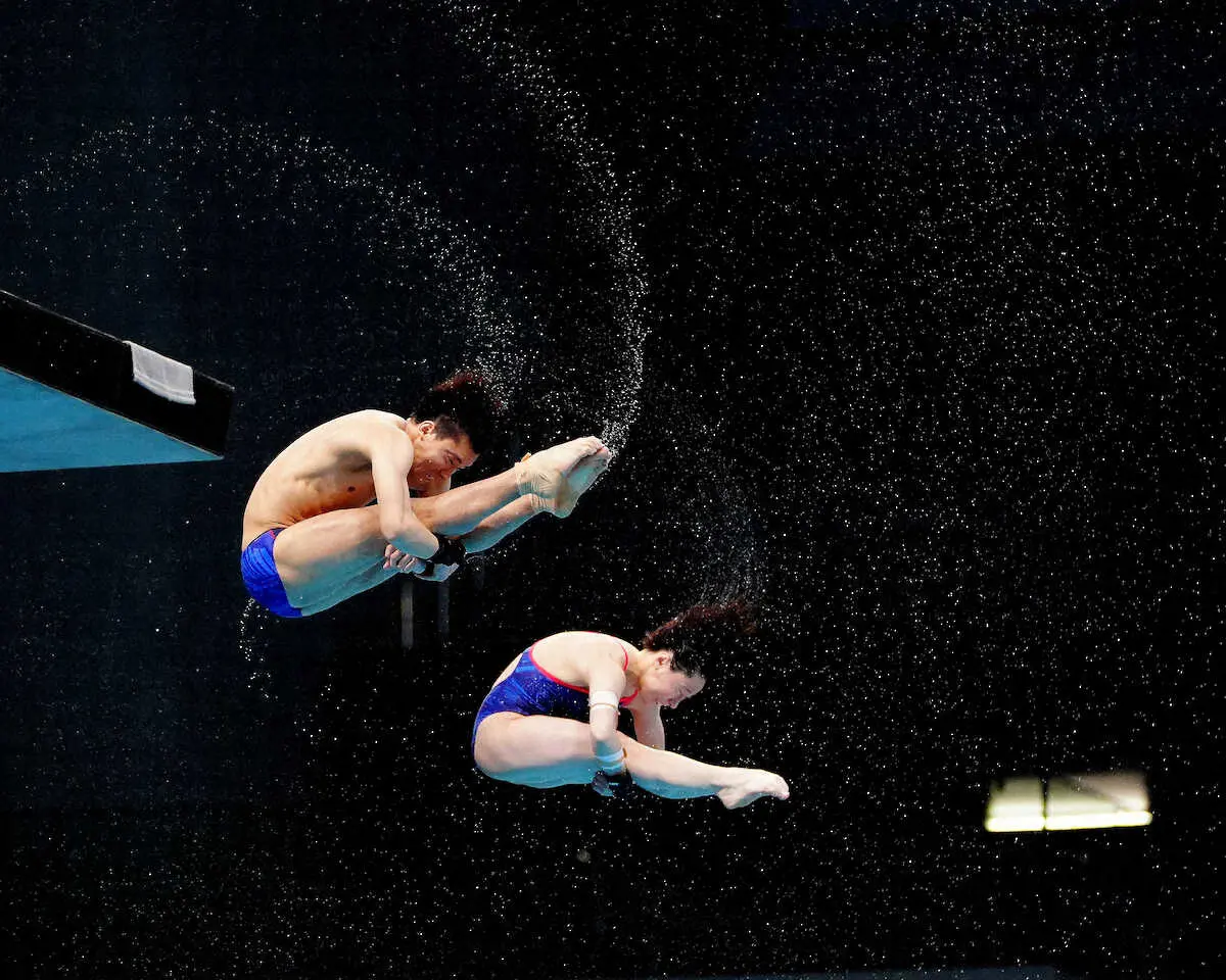 <2023年度翼ジャパンダイビングカップ>MIX 10mシンクロナイズド 決勝。優勝を果たした伊藤(左)板橋組(撮影・河野 光希)