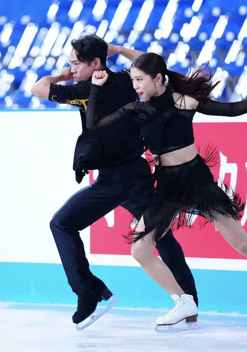 <フィギュア国別対抗戦前日練習>練習する村元哉中、高橋大輔組(撮影・小海途 良幹)