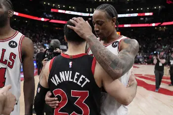 ラプターズのバンブリートと健闘を称え合うブルズのデローザン(AP) Photo by AP 東10位のブルズが9位ラプターズに勝利 19点差を逆転 10位が9位に勝った… ギャラリーで見る この記事のフォト 2023年04月13日の画像一覧 もっと見る 2023年04月13日の画像をもっと見る