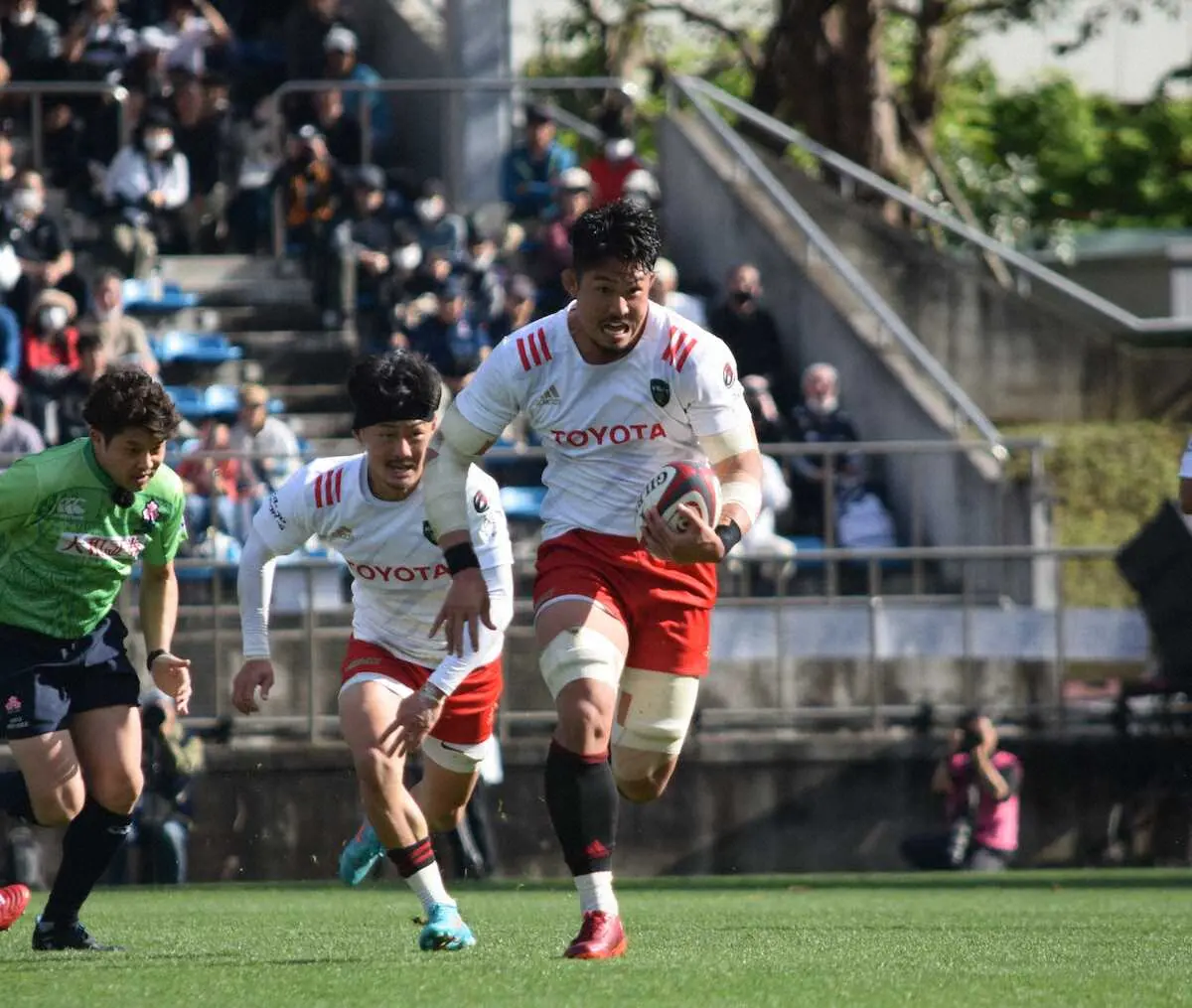 <BR東京・トヨタ>前半、敵陣でオフロードパスするトヨタの姫野 Photo by スポニチ トヨタ姫野和樹「クレージーゲーム」制す 雷雨で1時間遅れのキックオフ&… ギャラリーで見る この記事のフォト 2023年04月16日の画像一覧 もっと見る 2023年04月16日の画像をもっと見る