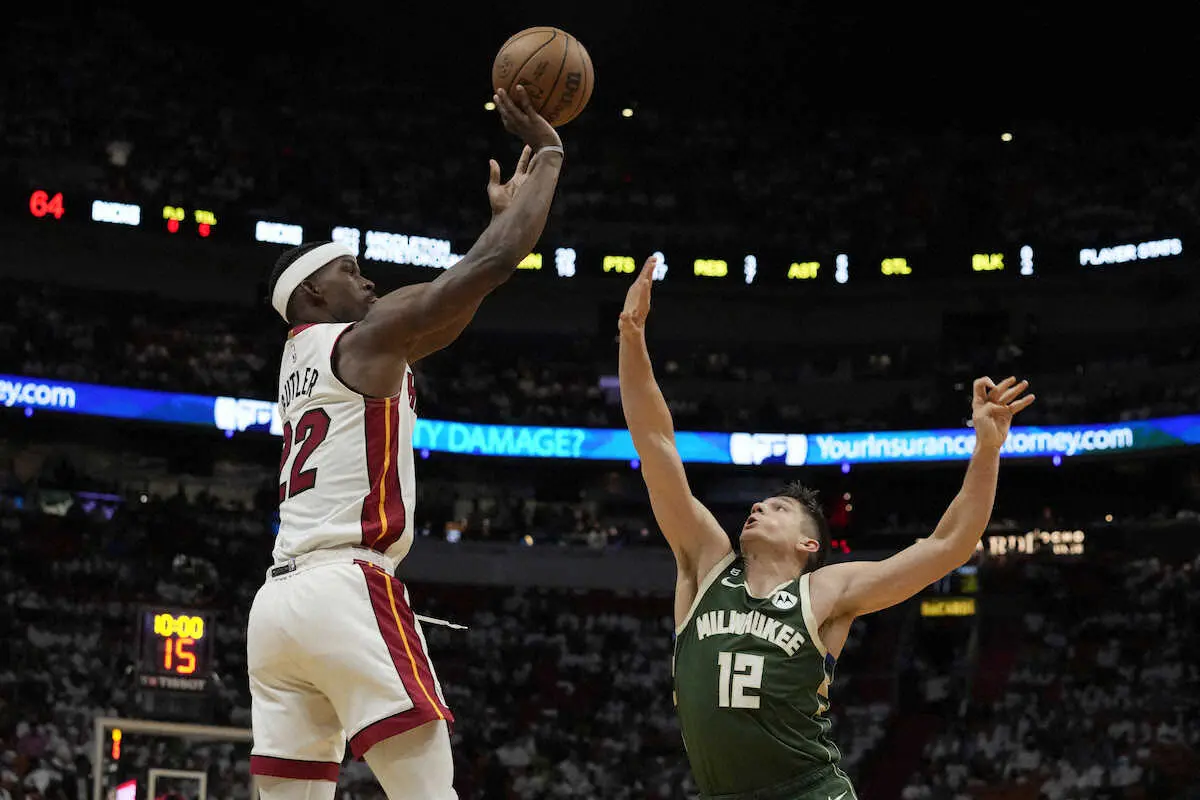 ヒートのバトラーをかわしてシュートを放つバックスのG・アデトクンボ(AP) Photo by AP 東・第1シードのバックスが窮地 第8シードのヒートに1勝3敗 ヒートのバ… ギャラリーで見る この記事のフォト 2023年04月25日の画像一覧 もっと見る 2023年04月25日の画像をもっと見る