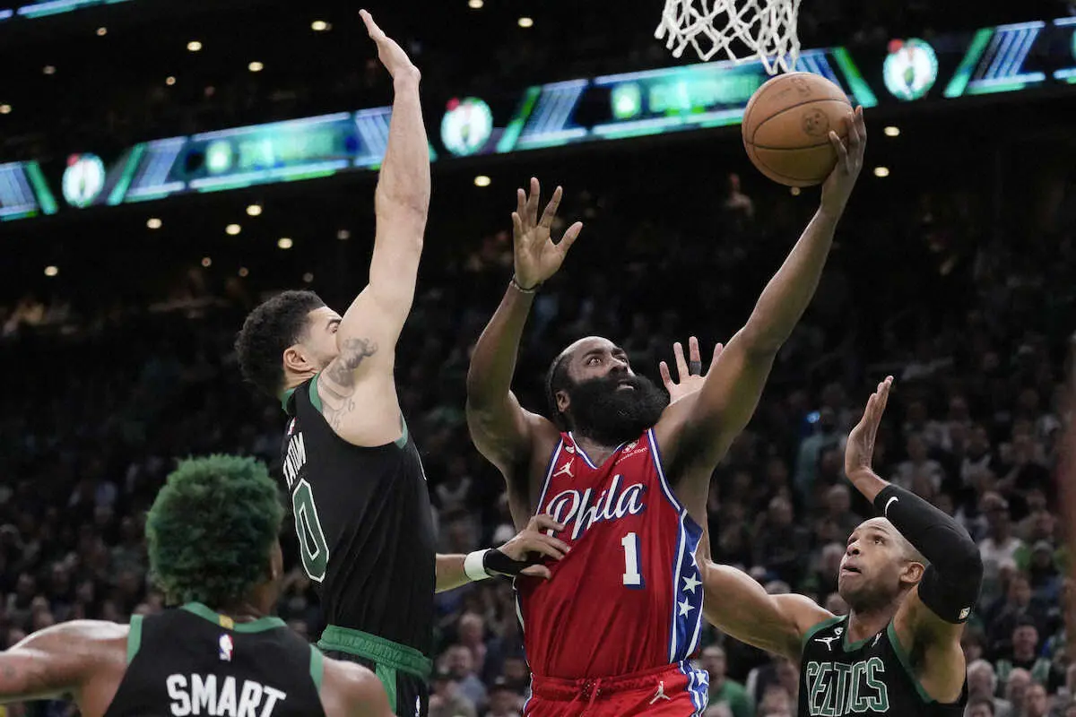 東の第3シードとなってポストシーズンを迎えている76ersは1日に敵地ボストン(マサチューセッツ州)での東地区準決勝シリーズ初戦に臨み、昨季のファイナルに出場している第2シードのセルティクスに119―115(前半63―66)で競り勝って先勝。1回戦(対ネッツ)を4戦全勝のスイープで突破して中7日の休養十分という日程ながら、2年連続で得点王となったセンターのジョエル・エンビード(29)が右膝の故障で1回戦の第4戦に続いて欠場した試合だったが、ジェームズ・ハーデン(33)がプレーオフ自己最多に並ぶ45得点をたたき出して敵地で貴重な白星をものにした。