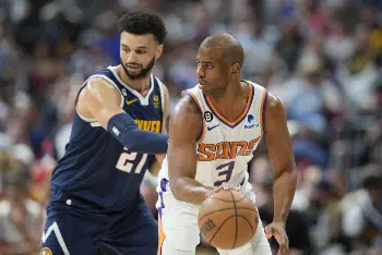 21年の準決勝シリーズでナゲッツを4戦全勝のスイープで下しているサンズは敵地で連敗。45分出場したデビン・ブッカー(26)が35得点、44分のケビン・デュラント(34)が24得点を稼いだものの、クリス・ポール(37)は左脚の付け根を痛めて第3Q途中でプレー続行不能となった。