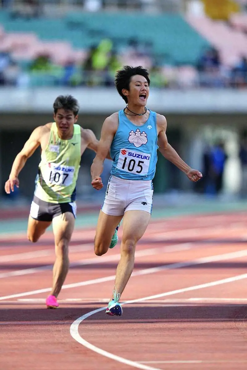 伏兵が叩き出した20秒10に会場がどよめいた。追い風参考ながら世界選手権参加標準を上回る好タイム。「実力より風の運が味方した」と謙遜したが、リオ五輪400メートルリレー銀メンバーの飯塚(5位)らを抑えての頂点だった。