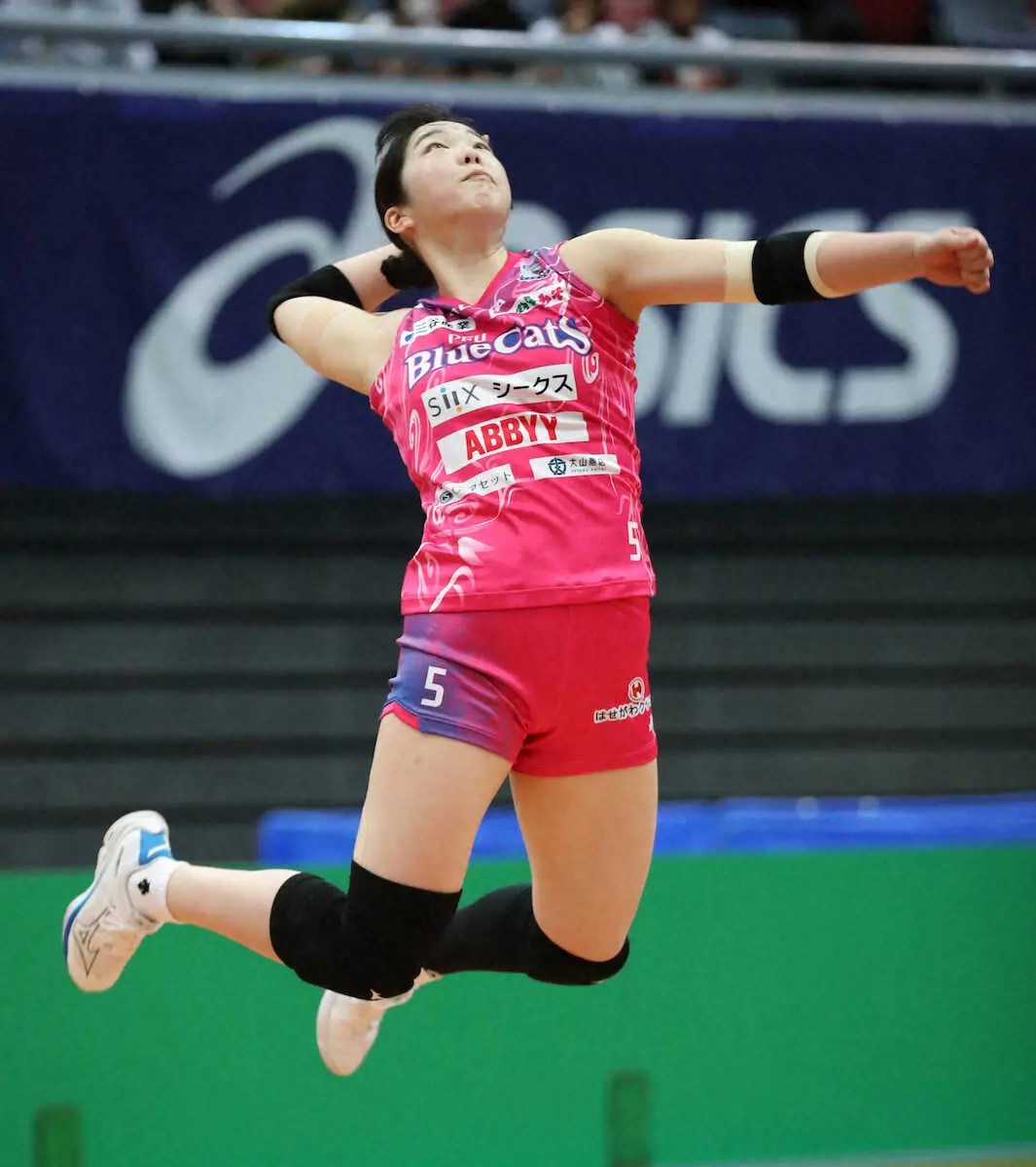 <女子・PFU>2セット連続で落とす絶体絶命のピンチから鮮やかな逆転勝利で2年連続の決勝進出を果たした。思いきりのいいスパイクで活路を開いた1年目の大村(日体大)は「1、2セット目は相手の雰囲気にのまれたけれど、3セット目から“行くよ、楽しむよ”と声をかけられて少しずつ良くなった」と試合を振り返った。「この大会を最後に退団される方もいるので、最後の試合も頑張りたい」と決勝戦へ意欲も示した。