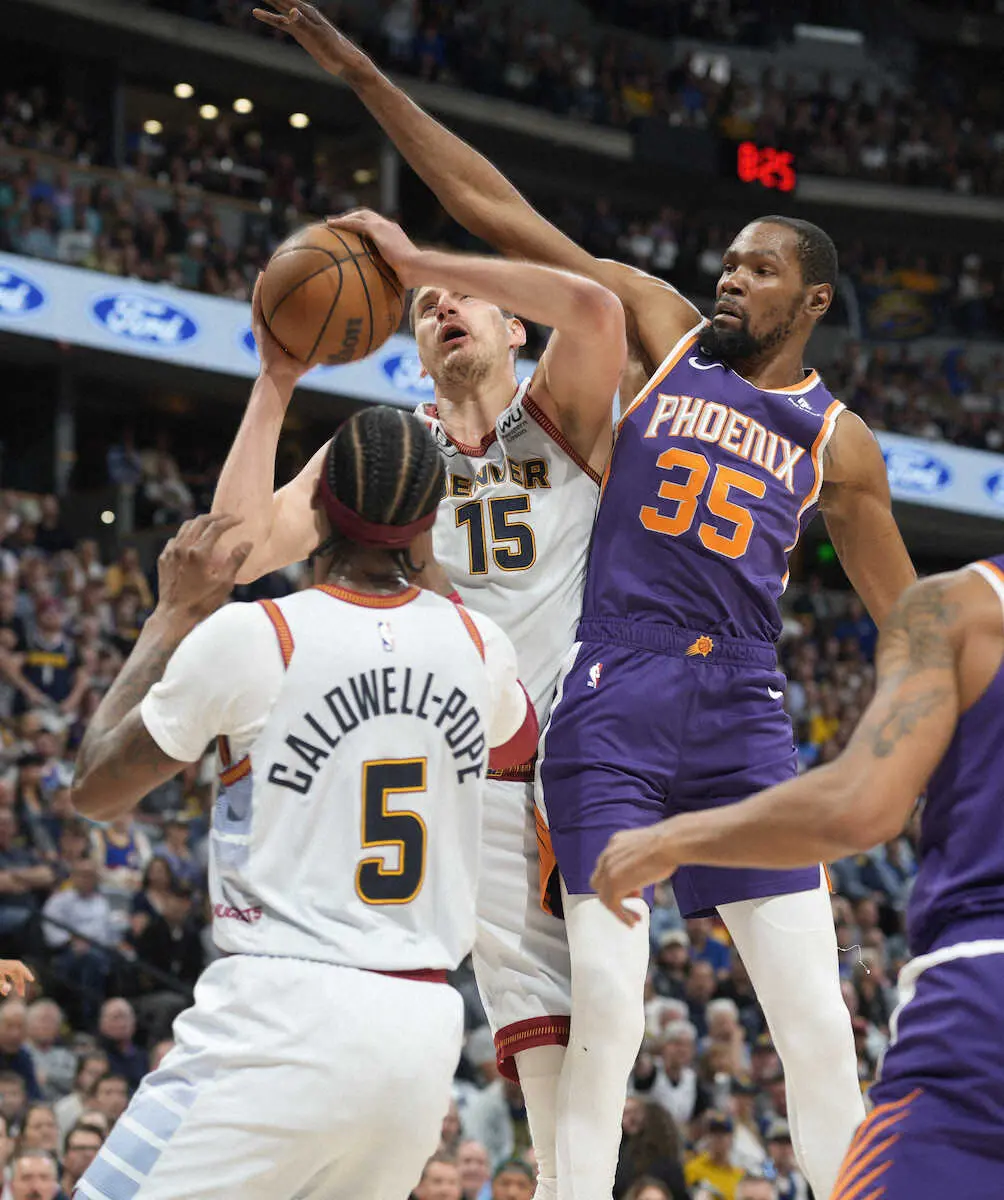 西の第1シードとなっているナゲッツは9日、地元デンバー(コロラド州)で行われた西地区準決勝シリーズの第5戦で第4シードのサンズを118―102(前半52―49)で下して3勝2敗。敵地フェニックス(アリゾナ州)での第3戦と第4戦は落としたが、プレーオフ進出チームが12から16に拡大された1984年以降では、3年ぶり3回目となる地区決勝進出まであと1勝に迫った。