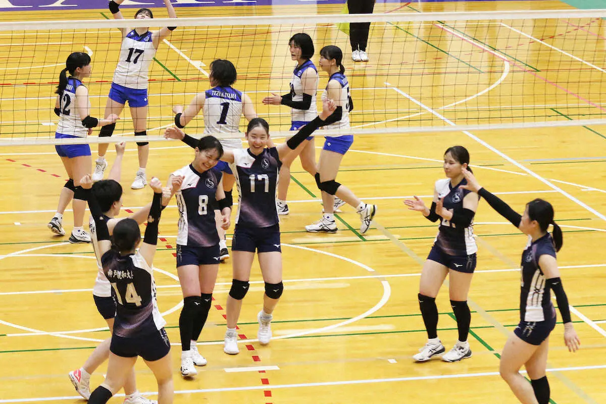 ▼神戸親和大・山本清和監督 試合前の練習でも選手の感触が良く、試合にもそのまま持ち込むことができ、結果的には完勝に終わった。相手スパイクを粘り強く拾って、ミスを誘い、得点に繋げられた。次戦勝てば優勝が決まるが、選手、スタッフ全員、全勝優勝を目指している。