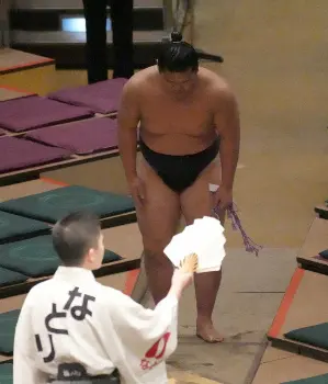 三段目・安西(21=陸奥部屋)が新屋敷(25=大嶽部屋)を寄り倒して白星発進とした。