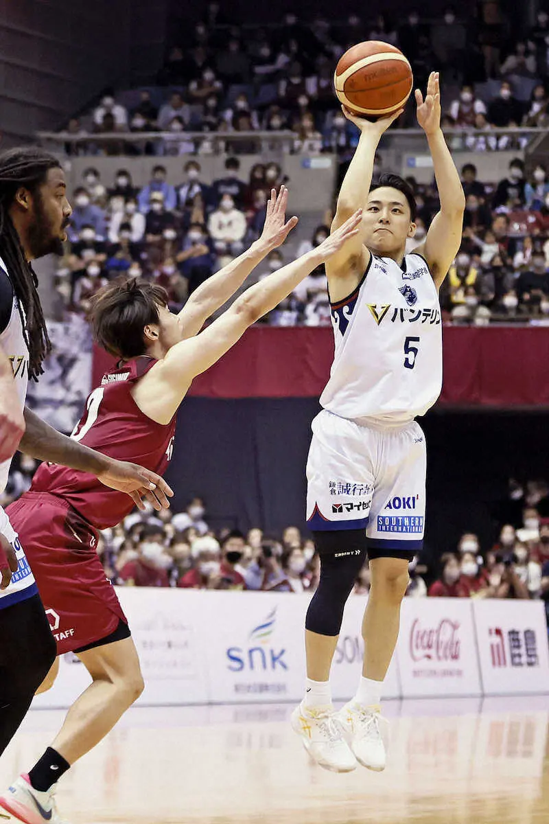 <横浜BC・川崎>川崎戦でシュートを放つ横浜BCの河村(C)B.LEAGUE