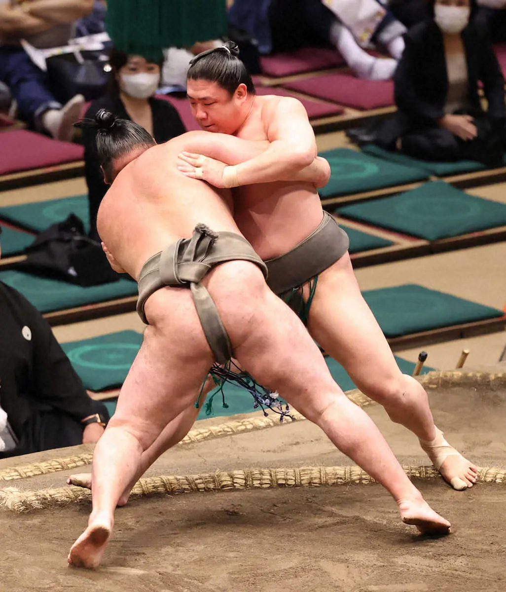 先に左上手を取られて攻め込まれたが、土俵際逆転の左突き落とし。「立ち合いが全然ダメでした」と納得の内容ではなかったが白星につなげた。