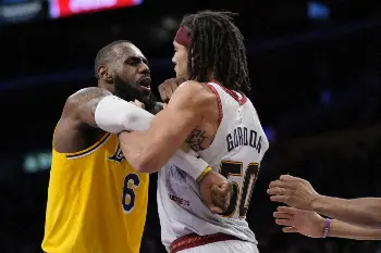 1987年のスーパーソニックス(現サンダー)以来、第7シードのチームとしては36年ぶりに西地区決勝に駒を進めていたレイカーズは22日、地元ロサンゼルス(カリフォルニア州)で第1シードのナゲッツとの4戦目を迎えたが111―113(前半73―58)で敗れて4戦全敗。前半で15点をリードしたものの第3Qで16―36と後手に回り、5点差を追って突入した第4Qでは3度同点にしたものの、その後の接戦をものにできなかった。111―113で迎えた残り4秒からの最後のプレーではこの日40得点のレブロン・ジェームズ(38)がインサイドにドライブしたがアーロン・ゴードン(27)に阻止されて試合終了。今シリーズでは4試合とも終盤の競り合いに敗れる形となった。