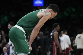 第1Q最初のプレーで左足首を痛めたジェイソン・テイタム(25)は14得点どまり。ジェイレン・ブラウン(26)は19得点、第6戦で劇的なブザービーターを決めたデリック・ホワイト(28)は18得点を挙げたものの後半で勝機は見いだせなかった。チームの3点シュートは試合開始から12本連続で失敗。大事な試合で成功率は21・4%(42本中9本)と精度を欠き、50・0%(28本中14本)を記録したヒートに“大差”をつけられた。