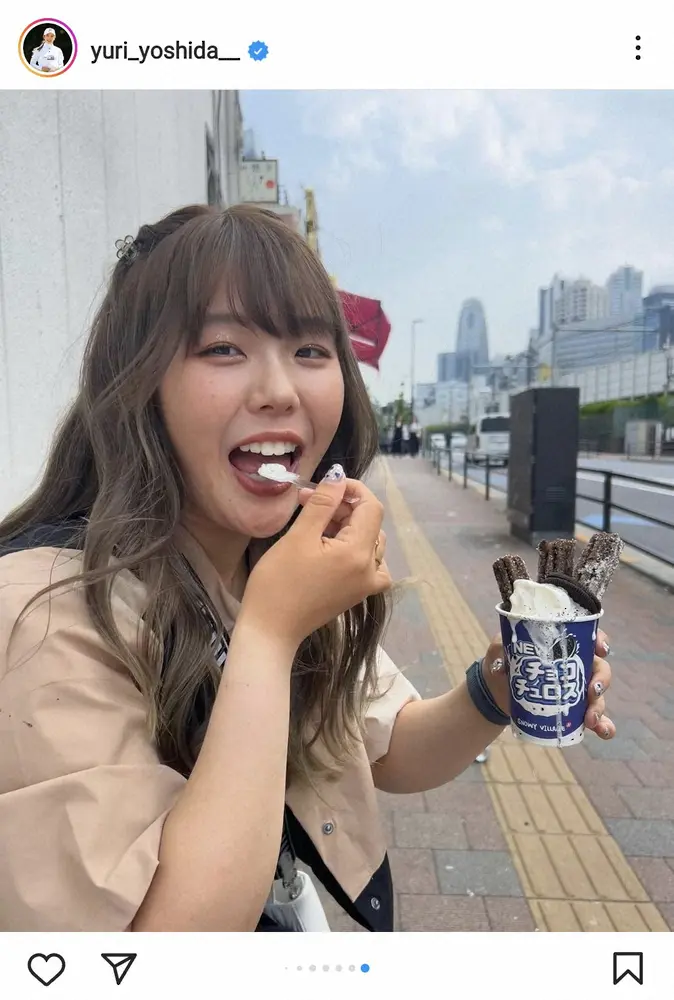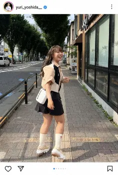 吉田優利 ミニスカの私服オフショット披露 「みなみさんがせっかく撮ってくれたのに手が…」