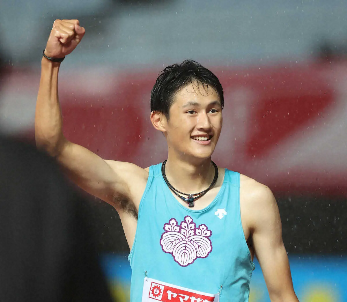 向かい風0・2メートル、強い雨が降りしきる中、直線に差しかかった終盤で一気に加速。持ち味でもある最後の伸びを存分に発揮し、歴代覇者の飯塚、上山ら実力者を抑えて頂点に立った。ゴール後は、雄叫びを上げてよろこびを爆発。「天候が悪い中でも、思っていたタイムを出せたのは今後につながる良いレースだった」とうなずいた。