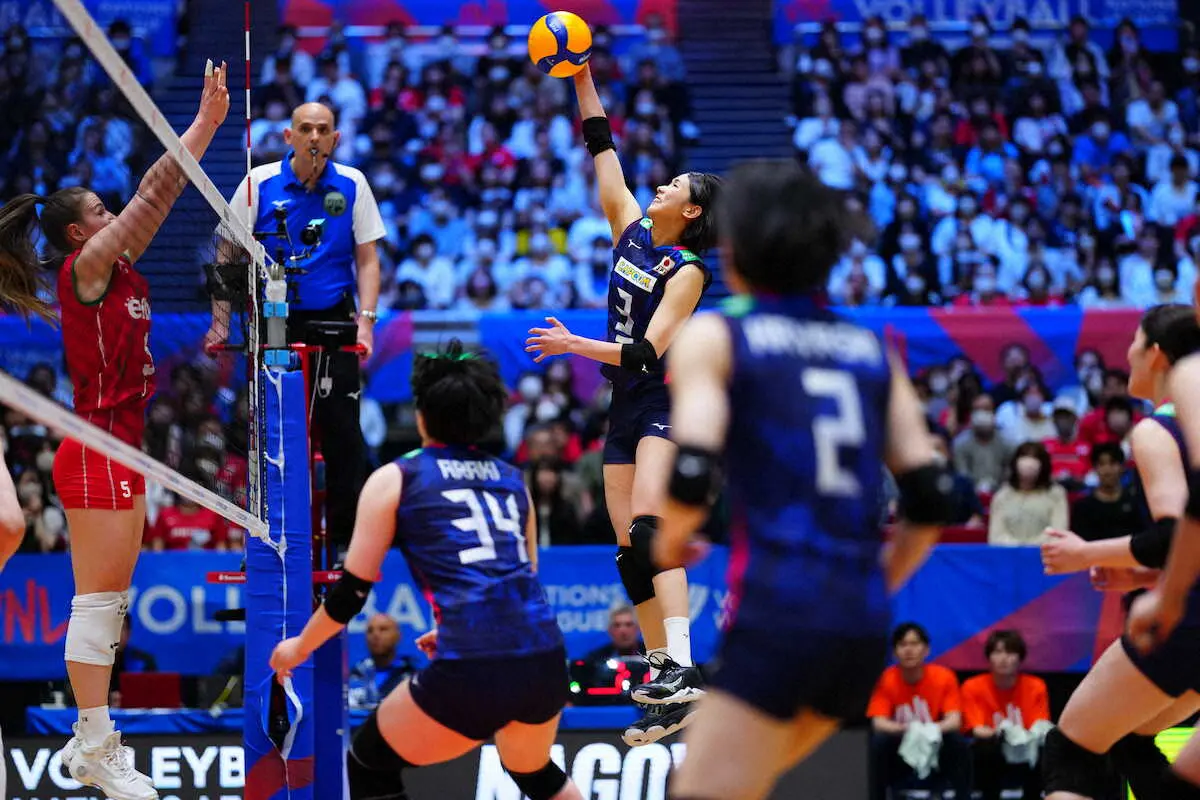 バレーボールのネーションズリーグ女子名古屋大会第5日は3日、名古屋市ガイシプラザで1次リーグ3試合が行われ、日本はブルガリアに3―0で快勝し、開幕3連勝を飾った。