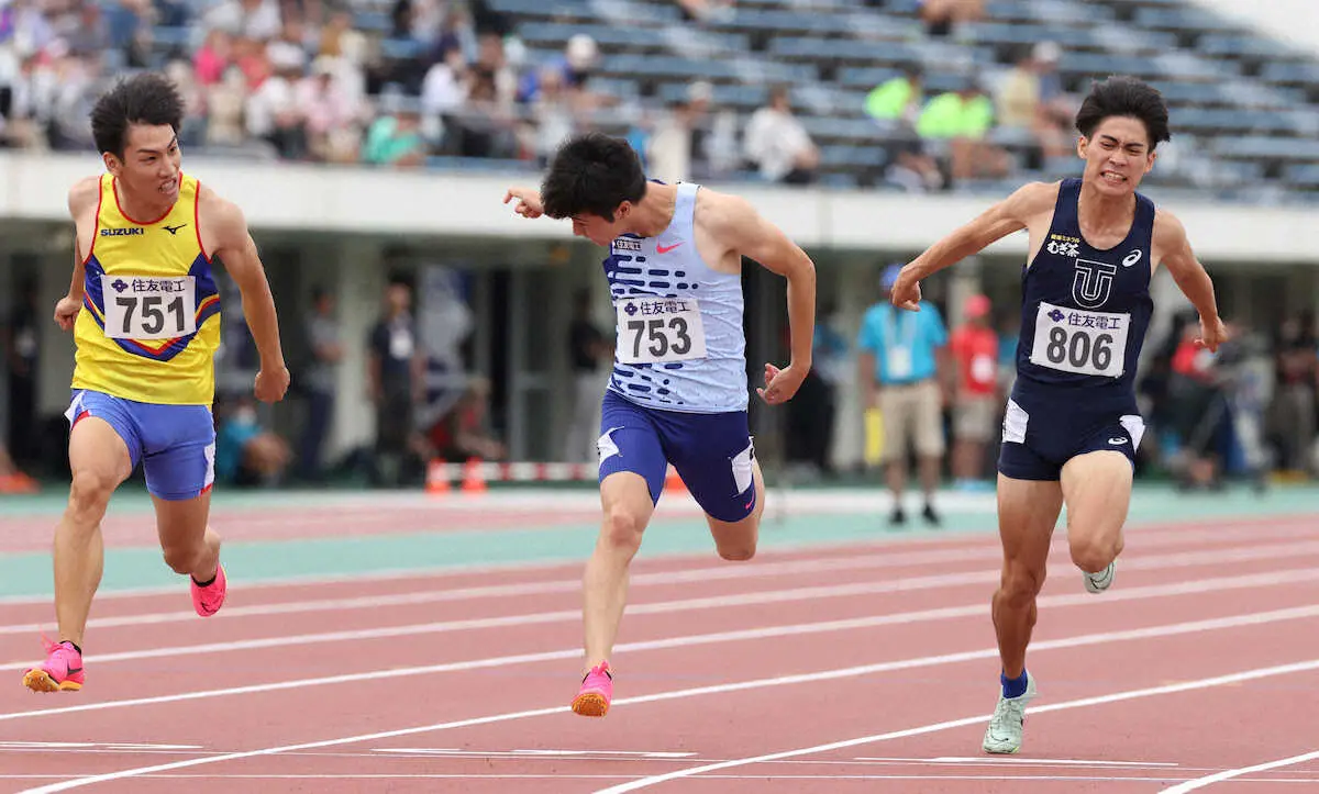 男子100メートル決勝は、鈴木涼太(スズキ)が10秒17(追い風1・7メートル)で制した。東京五輪代表の多田修平(住友電工)は10秒21で2位に入った。