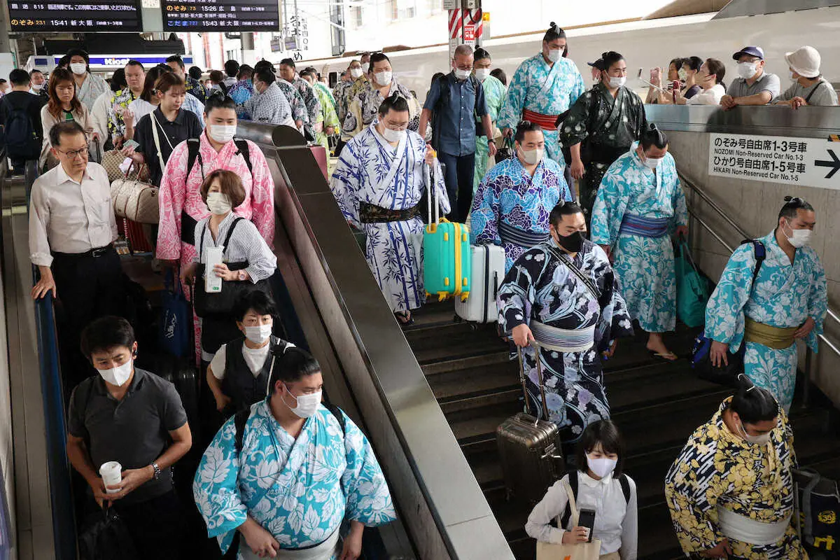 地方場所の風物詩である「相撲列車」はコロナ禍で運行されていなかったが、感染対策の緩和に伴い3年ぶりに復活。JR名古屋駅に浴衣姿の力士約200人が現れると、利用客らの歓声が至る所で上がった。