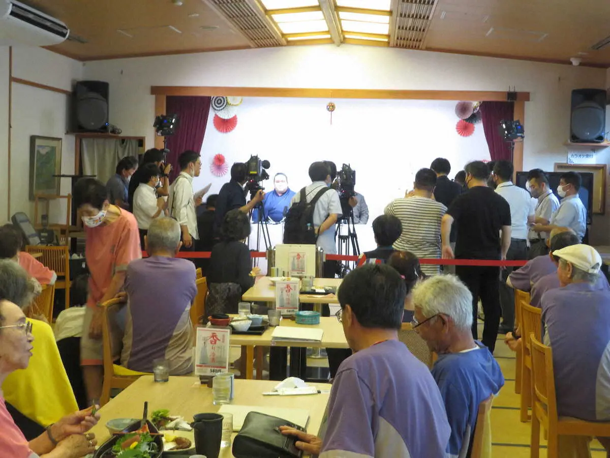 会見中も食事そっちのけで師弟の勇姿を見守る利用客の姿もあった。師匠も「稽古後すぐに温泉に入れるし、リフレッシュにもなる。力士にはいいことばかり。いい環境でやらせてもらっているので結果を残さないといけない。昨年はコロナ禍でファンサービスとか交流もできなかったけど、今年は場所前にも機会を設けて交流できたら。地域の人に相撲をもっと知ってもらえるきっかけにもなるので、大事にしたい」と話す。7月1日には力士との綱引き大会開催などふれあいイベントも用意されている。