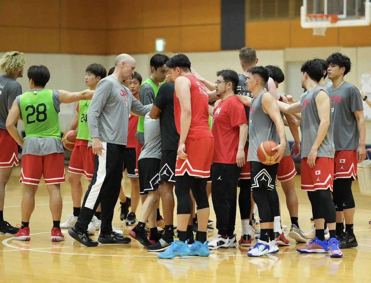 バスケットボール男子W杯(8月25日開幕、日本、フィリピン、インドネシアの3カ国共催)を控える日本代表が26日、都内で合宿をスタートして練習を公開した。富樫勇樹(29=千葉J)、馬場雄大(27)、河村勇輝(22=横浜BC)、富永啓生(22=米ネブラスカ大)ら15選手が参加。トム・ホーバス監督(56)は最初のミーティングで、早くもW杯1次リーグ初戦で対戦するドイツ対策に着手した。