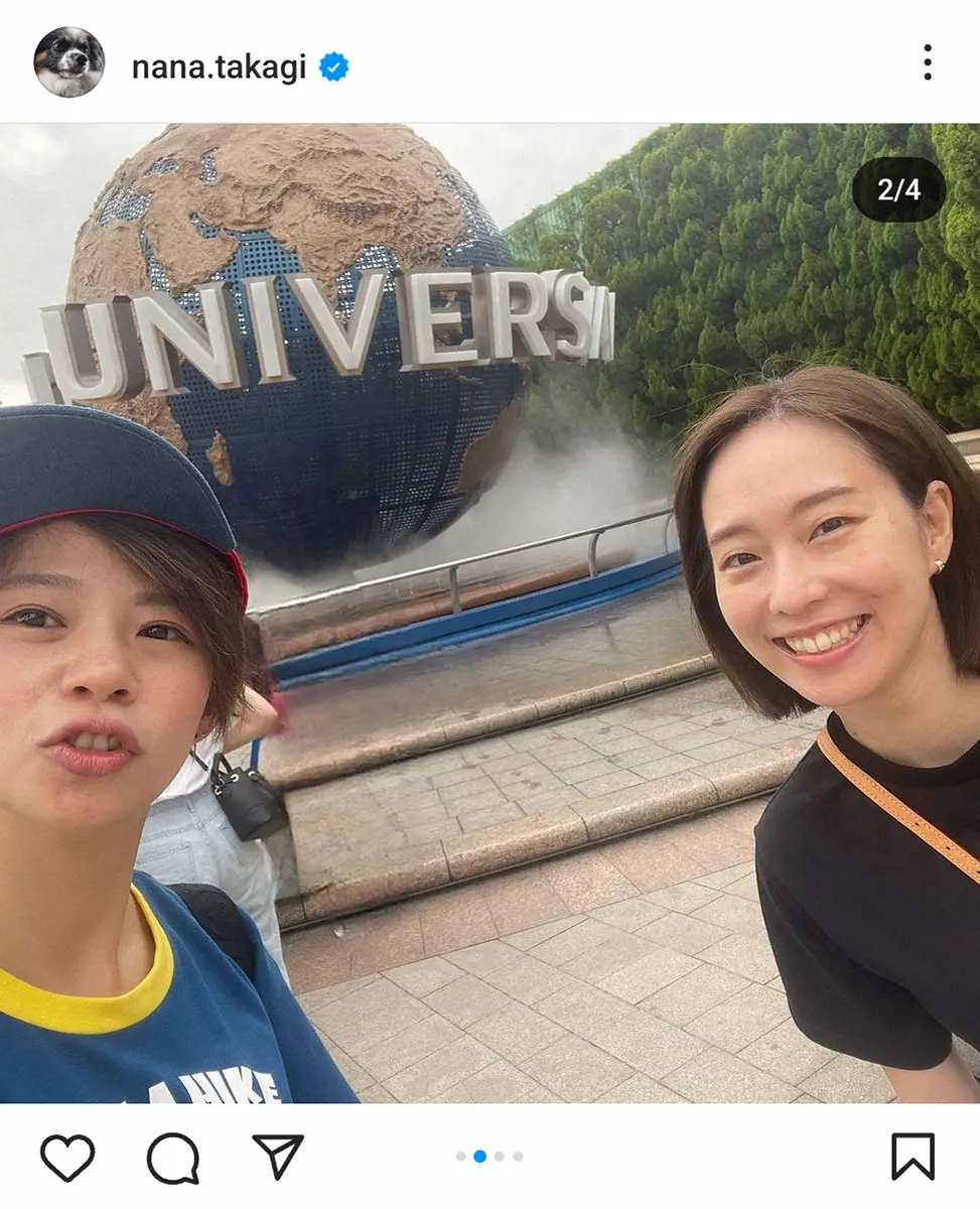 高木さんと石川さんは同学年で、「私は初めてのUSJ 楽しすぎた!!乗り物にのったりー!食べたりー!ショーみたりー!最後のジェットコースターが1番笑ったね」と楽しむ姿の写真を投稿。
