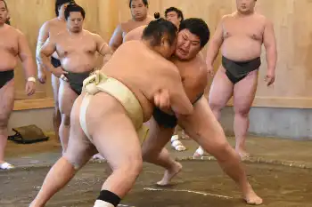 大勢の見学者の前で若元春が幕下以下と稽古「出世した姿を地方の方に見せることができるのはうれしい」