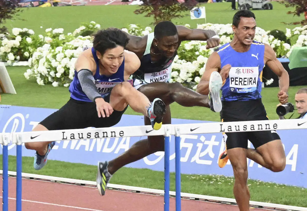 最後は気合だった。最終10台目のハードルを越え、横一線のスイス選手とスパート勝負。「絶対、最後やってやろうと思って気合でいった」。最後のスプリント力で0秒01差の戦いを制し、初参戦でいきなり頂点に立った。日本男子初のDL制覇となり「優勝は素直にうれしい」と話す一方で「(今大会不在の)米国勢がいる中で戦いたいとは思った」とも語った。