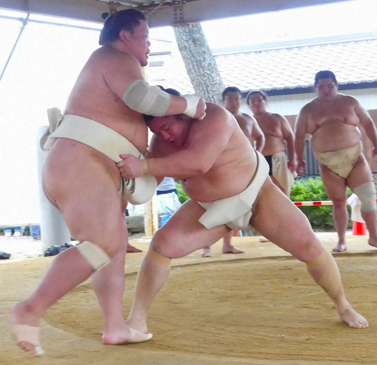 この日は両膝にテーピングが施されていたものの、ケガの影響を全く感じさせない動きの良さを見せた。6月から精力的に申し合い稽古に参加しており、調整は順調な様子。本来の実力が発揮できれば、名古屋場所での大勝ちにも期待が高まる。