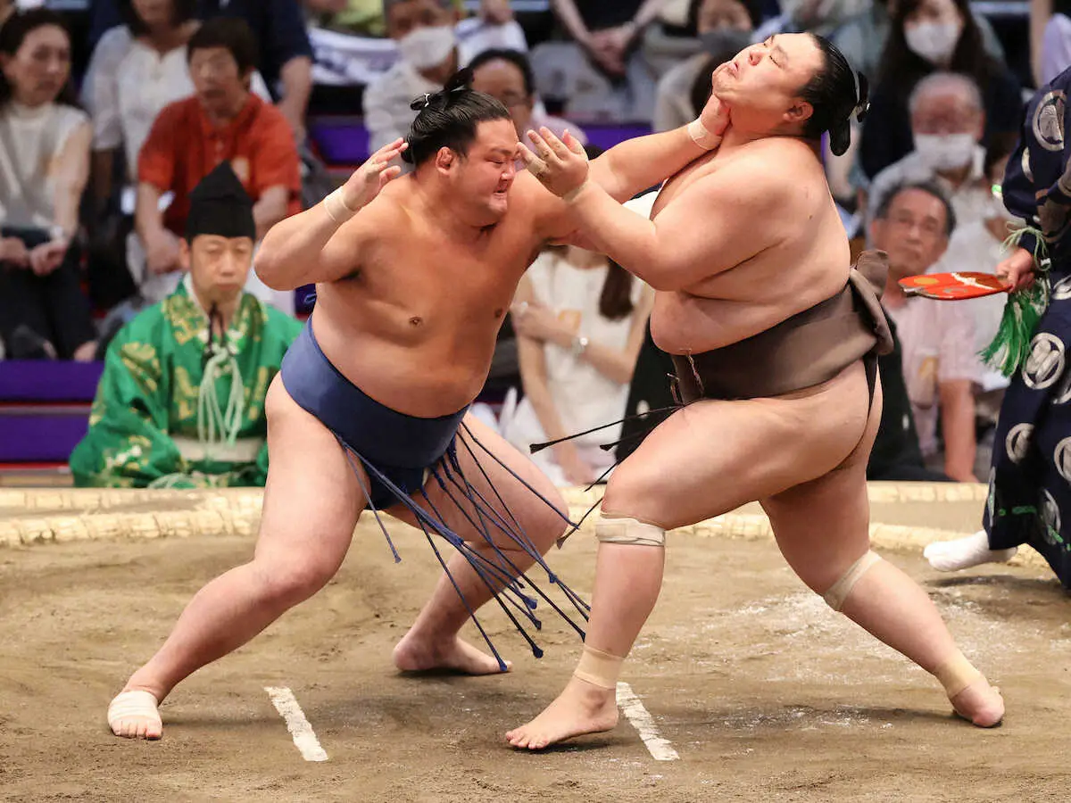 立ち合い張ってつかまえようとしてくる相手に対し、徹底して突っ張りで応戦。右喉輪を外されたところでもろ差しになり、渾身の力で寄り切った。「負けられないというか、そろそろ勝ちたいと」。気持ちの強さでつかんだ関取としての白星は、21年夏場所11日目以来、実に768日ぶりだった。