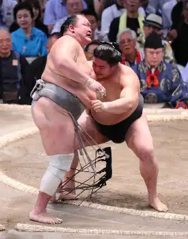 十両・熱海富士(20=伊勢ケ浜部屋)が白鷹山(28=高田川部屋)を下して8勝目を挙げ、3場所連続の勝ち越しを決めた。