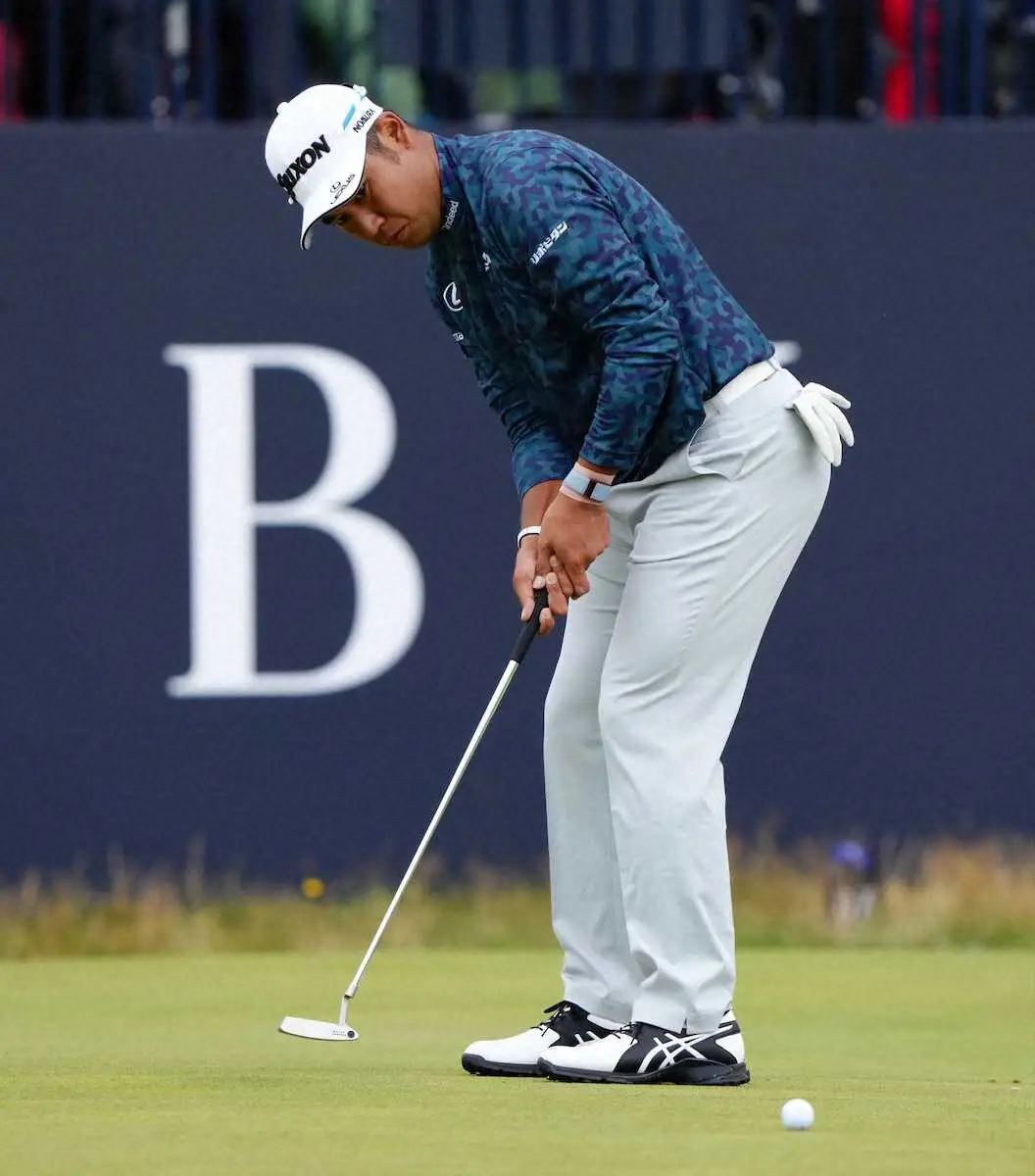 風は穏やか、時折、雨が降るムービングデー。松山は3番で約3・5メートルのフックラインを沈め、バーディーを先行させた。