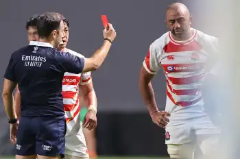 10―3で迎えた前半30分だった。ボールキャリーしていたサモアのNo・8にタックル。その後、一時プレーは続行されたが、TMO(ビデオ判定)に持ち込まれた。故意ではないものの、相手の肩より上にぶつかる危険なタックルと判定され、レッドカード。母校・札幌山の手高の後輩たちも駆けつけた会場からはどよめきが起こった。