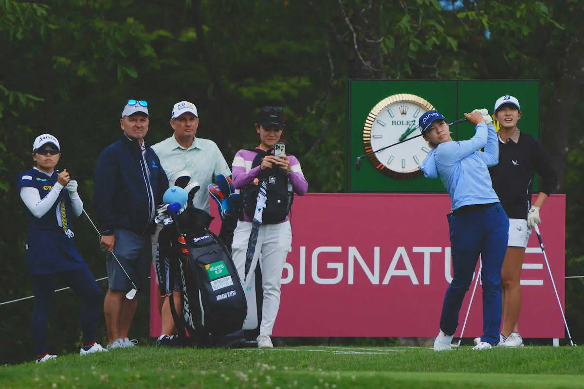 <エビアン選手権>練習ラウンドで笑顔を見せる渋野日向子(右から2人目)と勝みなみ(撮影・西尾 大助) Photo by スポニチ 初出場の勝みなみ「鹿児島みたい(笑)」レマン湖を望むコースで地元感?2… ギャラリーで見る この記事のフォト 2023年07月26日の画像一覧 もっと見る 2023年07月26日の画像をもっと見る