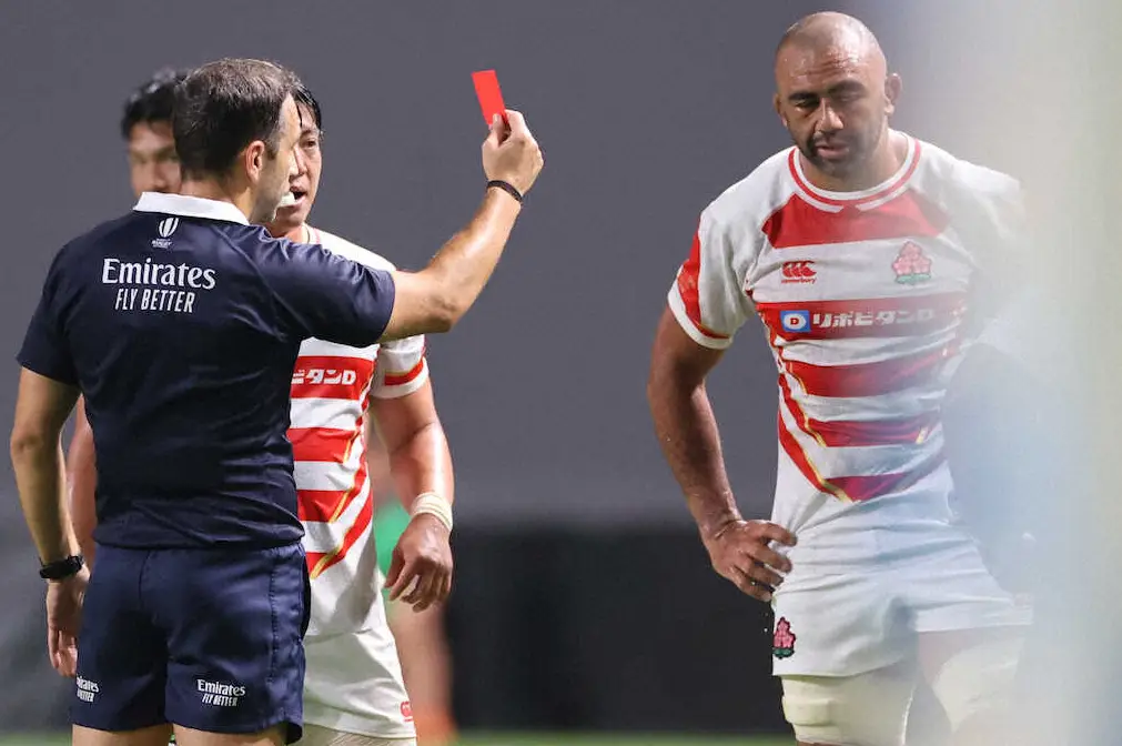 リーチは「リポビタンDチャレンジカップ2023パシフィックネーションズシリーズ」第1戦として臨んだサモア戦にNo・8として出場し、10―3で迎えた前半30分、ボールキャリーしていたサモアのNo・8にタックル。その後、一時プレーは続行されたが、TMO(ビデオ判定)に持ち込まれた。故意ではないものの、相手の肩より上にぶつかる危険なタックルと判定され、人生初のレッドカードで退場。母校・札幌山の手高の後輩たちも駆けつけた“凱旋試合”でまさかの展開となり、試合も22―24で敗れていた。