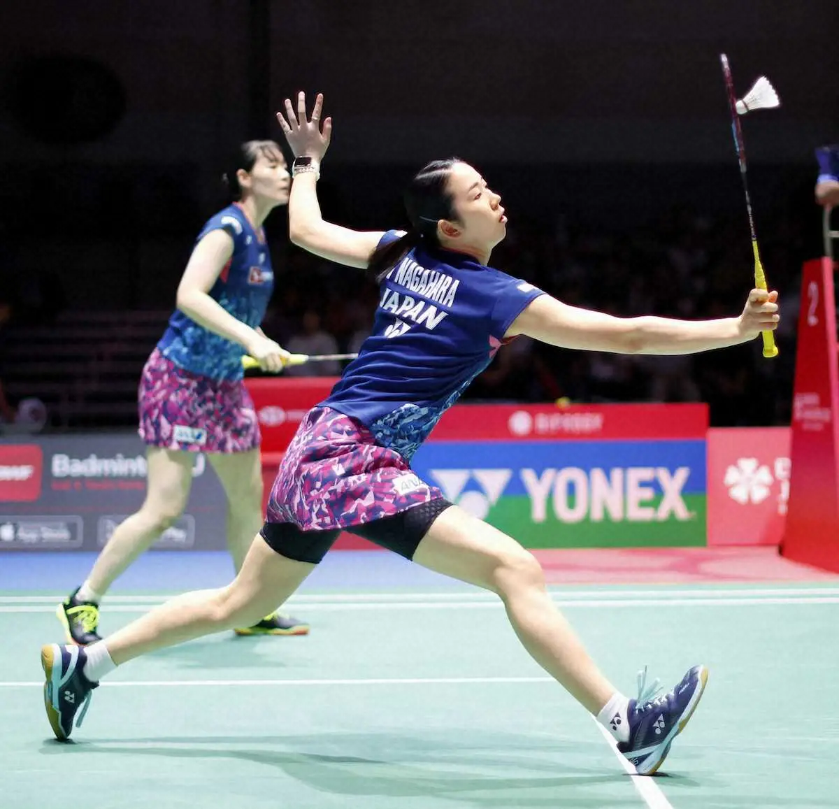 各種目の準決勝が行われ、女子ダブルス世界ランク4位の永原和可那、松本麻佑組(北都銀行)は同3位の韓国ペアに1―2の逆転負けを喫した。