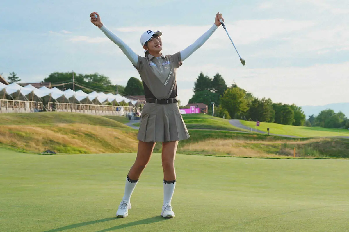 9Iで放った第1打はピン右前から傾斜に乗ってカップイン。中学時代に1度経験はあるが試合では初で、メジャーでの達成に「ほんと信じられない。やばい、めっちゃ幸せ。ゴルフ最高」と満面の笑みだった。