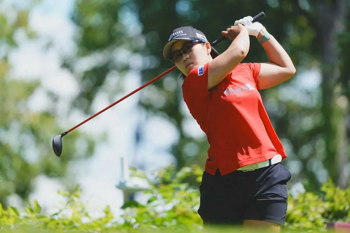 最終ラウンドの3番、ティーショットを放つ畑岡(撮影・西尾 大助)
