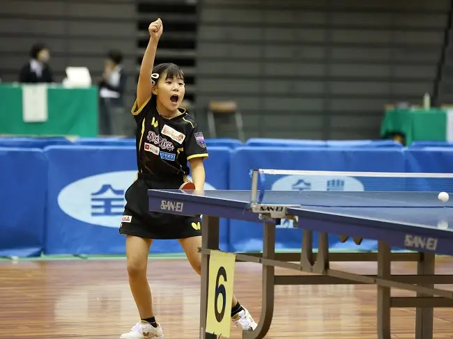 小学生ながらTリーグ女子・京都カグヤライズに在籍。2年生だった一昨年のバンビ、3年生だった昨年のカブを制し、今大会も優勝候補の筆頭だった。他の選手にマークされる立場で研究もされていたが、受け身にはならずに攻めの姿勢を貫いた。決勝では右手甲に「自分との戦い」「卓球台を広く」「余裕を持つ」と書き、左右に揺さぶりながら得点を重ねた。「同い年でも年下でも向かっていけた」と強気の姿勢は崩れなかった。