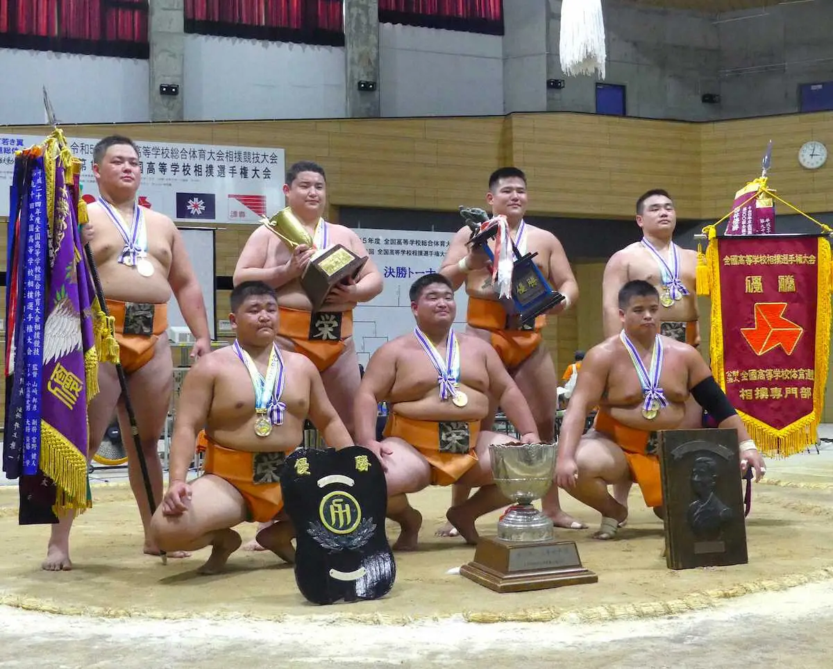 優勝が決まり、チーム全員で歓喜の輪をつくって大号泣。山田道紀監督も涙を流し「チームワークですね。同じ屋根の下で同じ釜の飯を食って、いろんなことがあって泣き笑いしてきているので、最高の思い出になりますよ」と教え子たちを称えた。選手たちが真っ先に胴上げしたのは、山田監督の妻である早苗さん。親元を離れて寮生活する生徒たちにとって母親のような存在であり、全員からの感謝の気持ちがあふれた。次に胴上げしたのは、まわしを締めていないサポート役の3年生たち。「強いも弱いも、みんな一つの家族だから」と山田監督が語るように、レギュラー外も含めチーム全員で勝ち取った日本一だった。