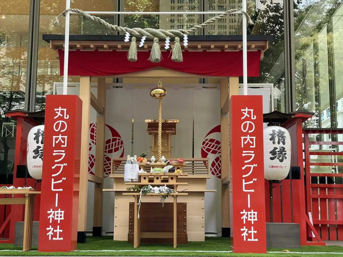 ラグビー日本代表オフィシャルスポンサーの三菱地所は7日、東京・丸の内に「ラグビー神社」を設置した。