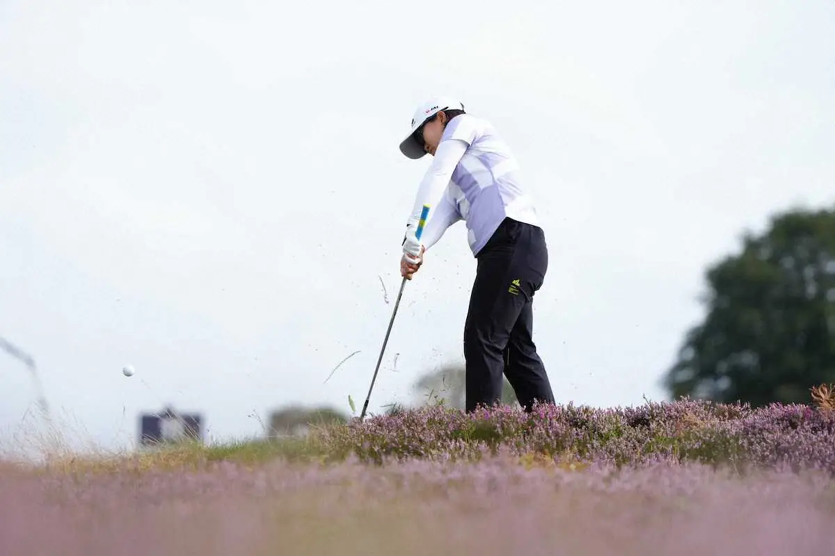 <全英女子オープン>第3ラウンドの14番、ショットを放つ畑岡(撮影・西尾 大助)