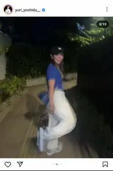飲食店での2ショットや、白のパンツ、白と青のスニーカーを合わせた自身の全身ショットなども投稿した。