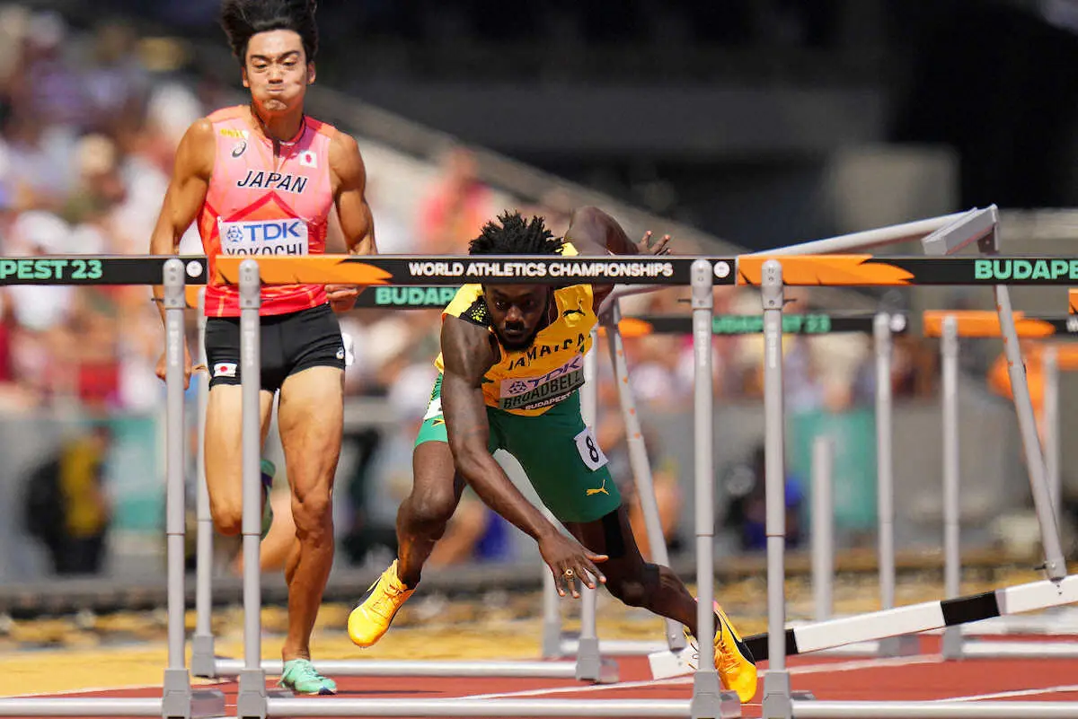また、予選3組の横地大雅(22=TeamSSP)は予選3組で横を走っていたジャマイカの選手が転倒し、横地のレーンにも体が入ってしまったため、横地は失速。14秒39の組8着だったが、救済措置で準決勝進出となった。