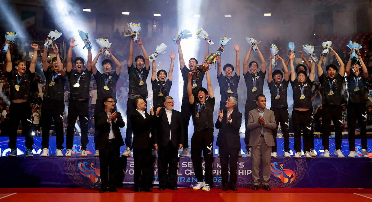 世界ランク5位の日本は決勝で同10位のイランに3―0で勝ち、17年以来3大会ぶり最多10回目の優勝を飾った。ネーションズリーグ銅メダルに続く快挙でパリ五輪予選を兼ねたW杯(9月30日開幕、東京)に弾みを付けた。石川祐希(27=ミラノ)が最優秀選手、高橋藍(21=日体大)がベストアウトサイドヒッター、小野寺太志(27=サントリー)がベストミドルブロッカーに選出された。
