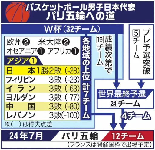 【バスケW杯】日本 最速で31日にパリ五輪切符獲得へ!その条件とは…?