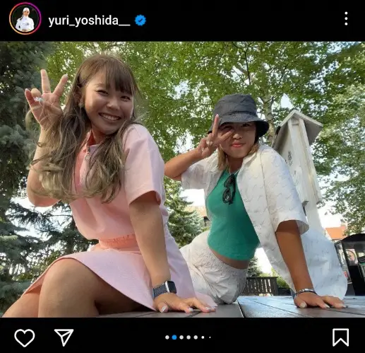 プロゴルファーの吉田優利(23=エプソン)が1日までに自身のインスタグラムを更新。私服姿で、プロゴルファーの上野菜々子(23)と休日を楽しむショットを披露した。