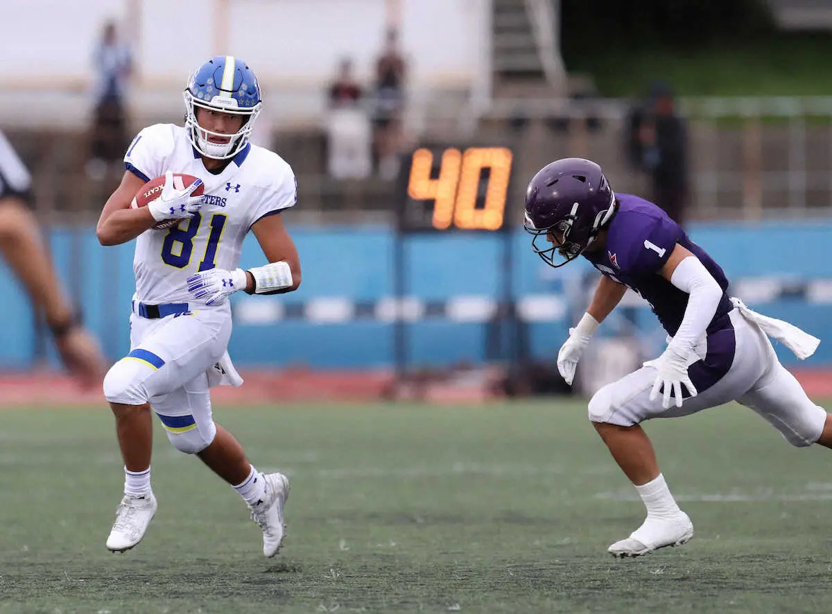第1Q9分53秒に、WR小段天響(1年)がQB星野秀太(2年)の32ヤードTDパスをキャッチ。第2Q7分14秒には、QB鎌田陽大(4年)の35ヤードTDパスを難しい体勢になりながら、ジャンプ一番捕球した。