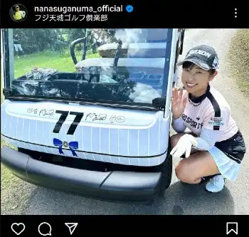 菅沼菜々 ミニスカウエアでサイン入り“ナナカート”お披露目に「サインまで可愛い」「乗りたいなぁ」